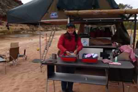 I think a plastic tub is better than a stainless sink on a camping kitchen (don’t need waste hose, waste bucket, and don’t have inlet problems) but two tubs is even better… dirty dishes in one, wash up in the other, or wash up in one, drain in the other.. it was hard to fit two of the black plastic tubs in our kitchens, but now these are perfect.. top and bottom are hard plastic, the middle is tough silicon. We have plenty of these in stock, so let us know if you’d like some included in your kitchen..