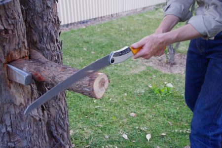 Čepel délka 360 mm, celková délka 400 mm. S „poloměrem“ 200 stupňů. Tato mírně zakřivená čepel může mít tendenci řezat rychleji. Velké zuby, stejné jako bigboy s červenou rukojetí.