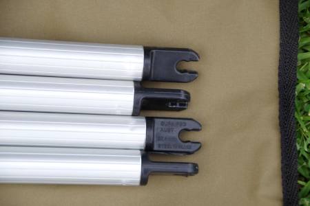 Australian made, heavy duty twist lock crab claws.. designed to be used only with the twist lock tent poles (bent spigot) two stage locking crab claw, securely connects to the bent spigot of the tent pole, creating a spreader bar to help keep awnings tight.. particularly good with the oztent range of tents. Ideally purchase two of the crab claws, and 4 upright poles.. now stocking the large crab claw, which is just 200 mm longer, but this is needed for the Oztent RV5.. check the kit suitable for the RV5 also.