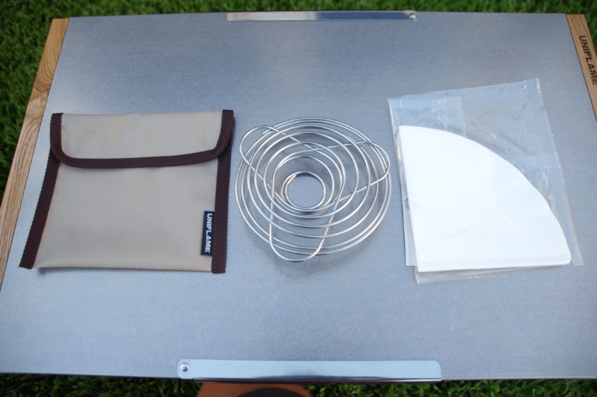 Překapávač kávy z nerezové oceli. Lze použít přímo do šálku nebo do konvice na čaj. Dodává se s malým nylonovým sáčkem. Chytrý design skládací naplocho. Vyrobeno v Japonsku.