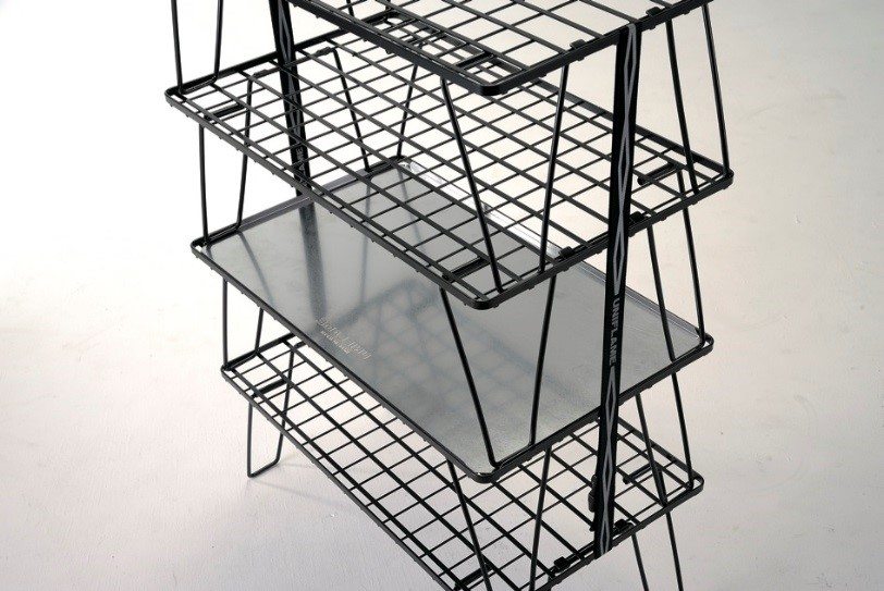Tyto stojanové regály lze použít jako stoly nebo police. Velmi šikovný design, takže se skládají naplocho a lze je stohovat na sebe.